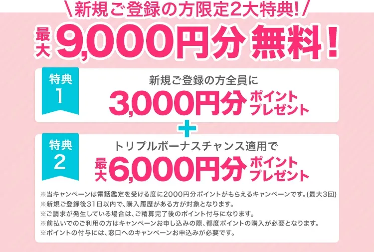 最大9,000円分無料PTプレゼント