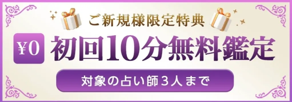 今から始めるあなたには特別なオファーが用意されています。それは、「対象占い師の鑑定が初回10分無料」というキャンペーンです。